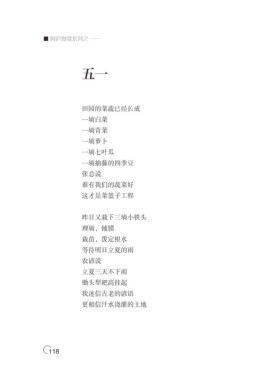 ■ 阿庐漫歌系列之 —— 五一 田园的菜蔬已经长成 一墒白菜 一墒青菜 一墒萝卜 一墒七叶瓜 一墒抽藤的四季豆 张总说 谁有我们的蔬菜好 这才是菜篮子工程 昨日又栽下三墒小铁头 理墒,铺膜 栽苗,泼定根水 等待明日立夏的雨 农谚说 立夏三天不下雨 锄头犁耙高挂起 我迷信古老的谚语 更相信汗水浇灌的土地 118