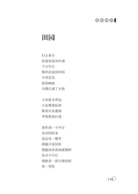 田园 情怀阿庐 归去来兮 119 你迎着南风吟诵 千百年后 那些诗意的田园 不再荒芜 块块畦畦 全都长满了乡愁 玉米拔节背包 小麦覆垅枯黄 秧苗出水葱绿 草莓低垂红透 我听到一个声音 从田园传来 说是每一棵草 都能开花结籽 都能沐浴着雨露朝晖 你可不可以 别板着一张生硬的脸 笑一笑吧
