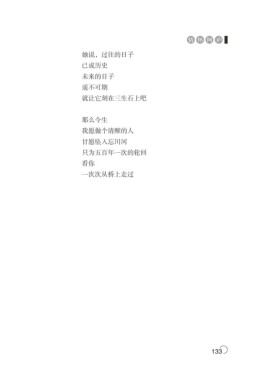 情怀阿庐 她说,过往的日子 已成历史 未来的日子 遥不可期 就让它刻在三生石上吧 那么今生 我愿做个清醒的人 甘愿坠入忘川河 只为五百年一次的轮回 看你 一次次从桥上走过 133