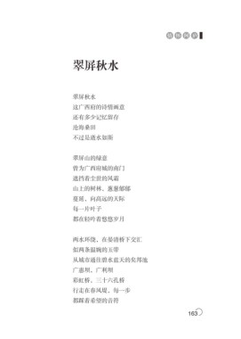 情怀阿庐 翠屏秋水 翠屏秋水 这广西府的诗情画意 还有多少记忆留存 沧海桑田 不过是逝水如斯 翠屏山的绿意 曾为广西府城的南门 遮挡着尘世的风霜 山上的树林,葱葱郁郁 蔓延,向高远的天际 每一片叶子 都在轻吟着悠悠岁月 两水环绕,在晏清桥下交汇 似两条温婉的玉带 从城市通往碧水蓝天的矣邦池 广惠坝,广利坝 彩虹桥,三十六孔桥 行走在春风堤,每一步 都踩着希望的音符 163