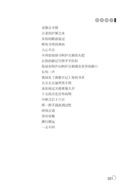 情怀阿庐 灵源古寺傍 古老的泸源之水 从你的眼前流过 唯有寺里的和尚 人心不古 不再给你探寻阿庐古洞的火把 让你的游记写得半半拉拉 你站在阿庐山阿庐古洞满是青苔的洞口 长叹一声 我站在《滇游日记》你的书页 古古古古地哭笑不得 还好雨过天晴黄菊大开 十五的月亮分外的明 中秋之后十六日 挥一挥手就此别过吧 西风古道 青衫布履 渐行渐远 一去不回 221