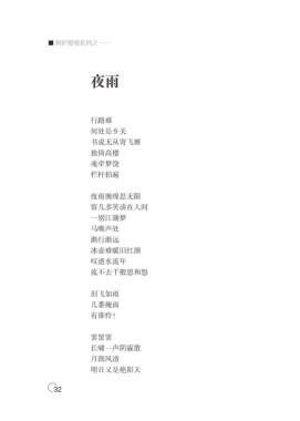 ■ 阿庐漫歌系列之 —— 夜雨 行路难 何处是乡关 书成无从寄飞雁 独倚高楼 魂牵梦绕 栏杆拍遍 夜雨缠绵思无限 留几多笑谈在人间 一别江湖梦 马嘶声处 渐行渐远 冰壶难暖旧红颜 叹逝水流年 流不去千般恩和怨 泪飞如雨 几番掩面 有谁怜? 罢罢罢 长啸一声阴霾散 月朗风清 明日又是艳阳天 32