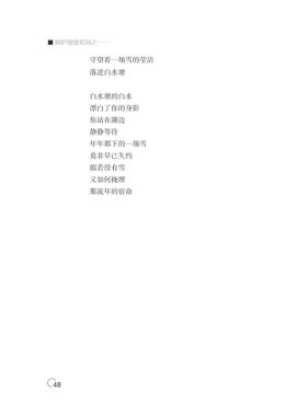 ■ 阿庐漫歌系列之 —— 守望着一场雪的莹洁 落进白水塘 白水塘的白水 漂白了你的身影 你站在湖边 静静等待 年年都下的一场雪 莫非早已失约 假若没有雪 又如何掩埋 那流年的宿命 48