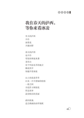 情怀阿庐 我在春天的泸西, 等你来看冰凌 冬天的泸西 不冷 油菜花 开满田野 春天的泸西 也不冷 零度的寒流来袭 老东山 有个叫凉水井的地方 桃花没开 却盛开着冰凌 山上的花花草草 以及一片片碧绿的松柏 一夜之间 全化作玉树琼花 形态各异 晶莹皎洁的美丽 此时此地 适合热闹的欢呼雀跃 49