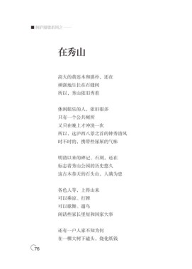 ■ 阿庐漫歌系列之 —— 在秀山 高大的黄连木和滇朴,还在 顽强地生长在石缝间 所以,秀山依旧秀着 休闲娱乐的人,依旧很多 只有一个公共厕所 又只在晚上才冲洗一次 所以,这泸西八景之首的钟秀清风 时不时的,携带些尿屎的气味 明清以来的碑记、石刻,还在 标志着秀山公园的历史悠久 这古木参天的石头山,人满为患 各色人等,上得山来 可以乘凉、打牌 可以歌舞、遛鸟 闲话些家长里短和国家大事 还有一户人家不知为何 在一棵大树下磕头,烧化纸钱 76