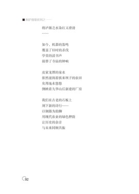■ 阿庐漫歌系列之 —— 将泸源之水染红又澄清 …… 如今,机器的轰鸣 覆盖了旧时的杀伐 学堂的读书声 接替了寺庙的钟响 皮家龙潭的泉水 依然滋润着挨来坝子的农田 矣邦池水悠悠 倒映着九华山后新建的厂房 我们在古老的石板上 刻下新的诗行—— 以钢筋为韵脚 用现代农业的绿色押韵 让历史的余音 与未来同频共振 92