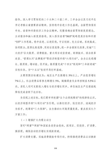 主要预期目标建议为:地区生产总值增长 5%以上,产业投资增长