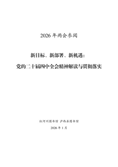 2026 年两会参阅 新目标、新部署、新机遇: 党的二十届四中全会精神解读与贯彻落实 红河州图书馆 泸西县图书馆 2026 年 1 月