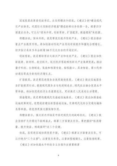 他说,在促进区域协调发展方面,《建议》部署五方面重点任务,可