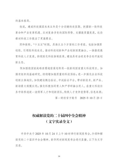 中共中央于 2025 年 10 月 24 日上午 10 时举行新闻发布会,介绍和解