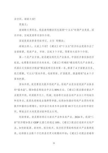 谢谢韩文秀同志。现在请郑栅洁同志围绕“十五五”时期产业发展、国