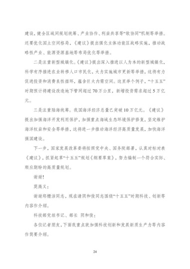 谢谢郑栅洁同志,现在请阴和俊同志围绕“十五五”时期科技、创新等