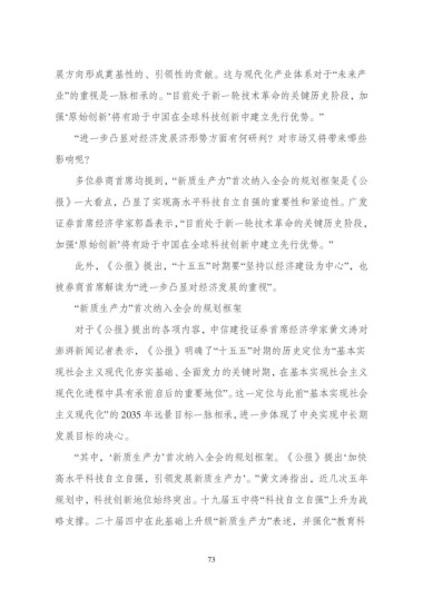 “其中,‘新质生产力’首次纳入全会的规划框架。《公报》提出‘加快