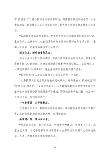 “各项报告聚焦高质量发展,把党的主张转化为国家意志和共同行动,