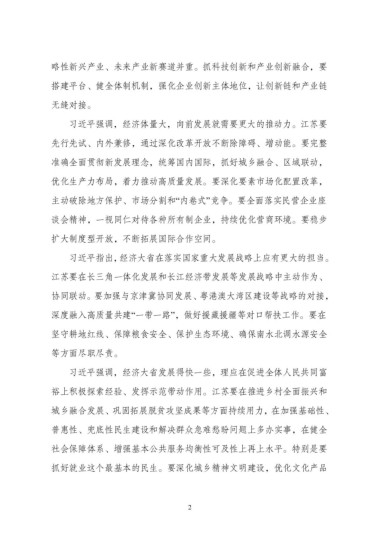 习近平强调,经济体量大,向前发展就需要更大的推动力。江苏要